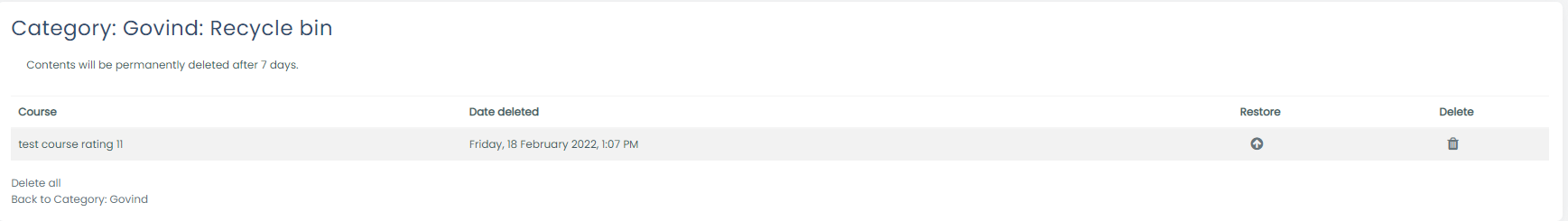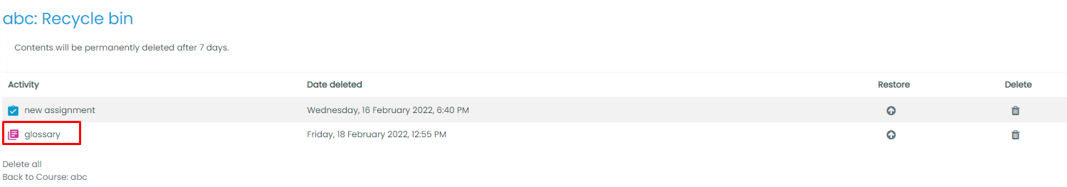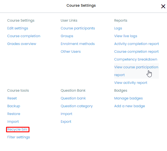 Course Recycle bin