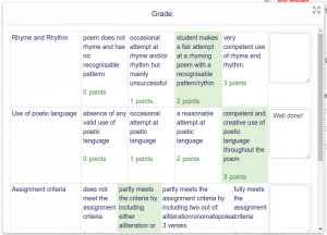 • As well as the rubric you can add summary Feedback comments for the work, and optionally Feedback files.
