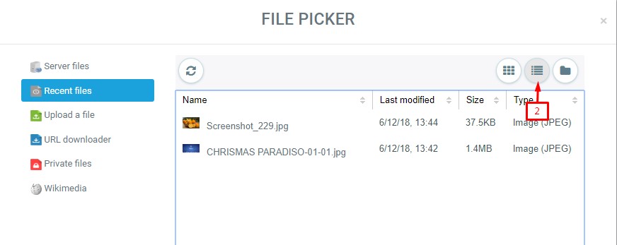 There are three ways to view files in the File picker, depending on your personal preference;