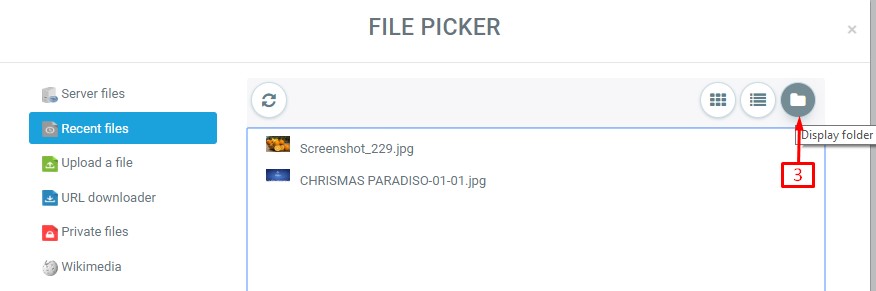 Note: The order in which repositories are listed in the file picker is set by an administrator in Settings > Plugins > Repositories > Manage repositories.