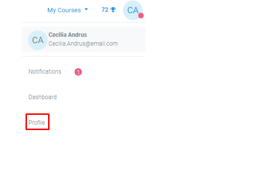 Every user in LMS has a Profile page which may be reached from the user menu top right and then clicking Profile. This page contains links to further pages allowing the user to edit their profile information and preferences, view their forum/blog posts, and check any reports they have access to.