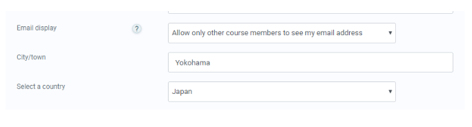 The other settings – City/Town, Country, Timezone and Description are optional and can be entered upon account creation. Users may also have the ability to setup how to display their email to others.