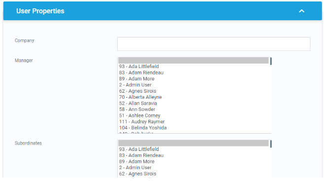 This section shows the hierarchy of the user in the company. It shows who the user’s manager is and/or if it has subordinates.