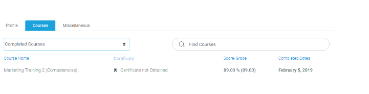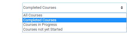 Provides the ability to filter the list by “Completed courses”, “Courses in progress”, “Courses not yet Started”, or “All Courses”