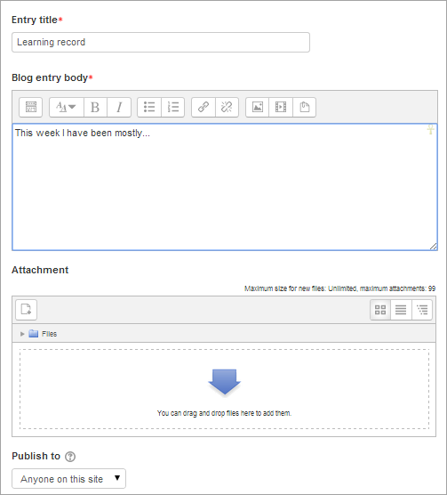 - Choose who you wish to publish the entry to i.e. who may see the entry. There are three options: