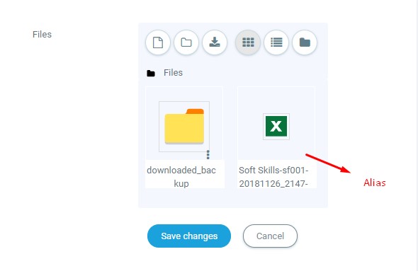 • If an alias is created, then when the original file is updated, it will change in all instances of the alias. So an instructor might add course notes to their private files for example, and then add them into a number of courses. When the instructor makes an alteration in the file in their private files, this alteration will be reflected in all instances of the course notes.
