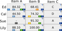 • The position of each tag within a grade cell is consistent no matter how many or which tags are displayed. This improves scanning speed and accuracy.