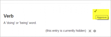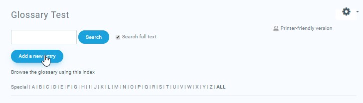 To add a glossary entry click the “Add a new entry” button in the center of the screen or the Administration block.