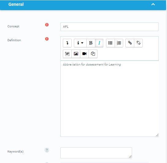 • Definition – Add the definition of the word or concept.