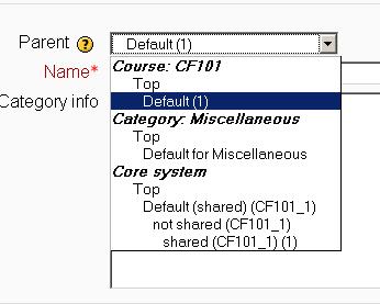 • Notice you can choose to make your category a ‘top level’ category in any context (see Question contexts) that is available to you. Or you can choose to add your category as a subcategory of another category in the same context as the