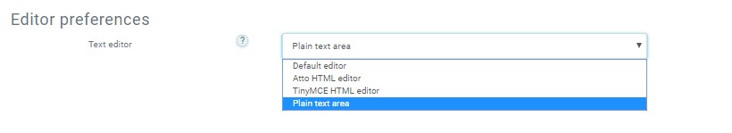 The Text editor is available for all text areas in LMS and the format is automatically set to HTML format (Atto being the default editor).