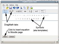DragMath is based on the simple idea that the User who does not know a lot of TeX (pronounced Tech) can still create a mathematical formula for publishing. In this case, LMS is the display agent so the TeX formulae are then rendered to an LMS screen. This essentially means that with little experience, any Junior High Maths instructor can generate all the formulae they need for most aspects of Maths in LMS.