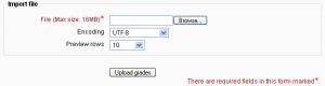 If you are unsure of the encoding of your CSV file, try selecting the second option in the encoding drop-down menu. If you’ve used Excel to produce the CSV file the second option WINDOWS-xxx encoding is probably the correct one. The grade import preview will tell you if you guessed the encoding correctly.