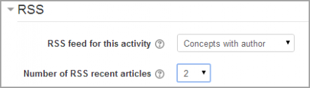 This turns RSS on or off. When set to “None,” the RSS feed is disabled. When set to “Concepts with authors,” the RSS feed will send out the glossary entries with the name of the author. When set to “Concepts without authors,” the RSS feed sends out glossary entries without the name of the author.