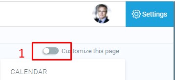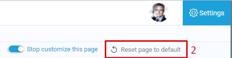 If a user has customized their page and wishes to revert back to the original settings, they can click the ‘Reset page to default’ button (2) after first clicking the ‘Customise this page’ button (1).