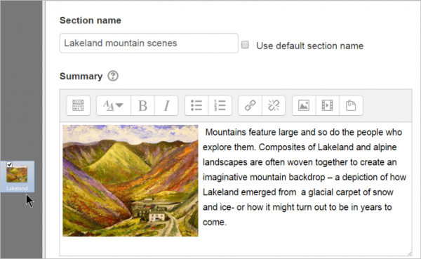 Some examples of where you will see the text editor include: Editing Section headings, description of an activity, writing an answer to a quiz question or editing the content of many blocks.