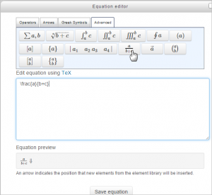 If either the MathJax or the TeX notation filters are enabled (in Settings > Site administration > Plugins > Filters > Manage filters) then an equation editor button is provided in the toolbar for launching the equation editor.
