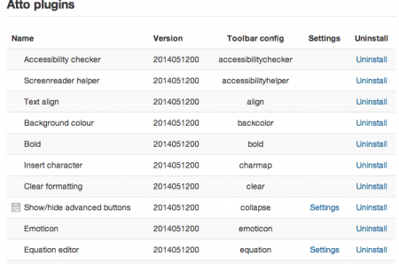 The administrator can specify which plugins to display and in which order from Settings > Plugins > Text editors > Atto HTML editor > Atto toolbar settings.
