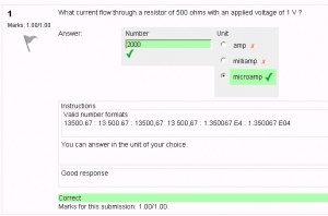 14. Units can also be specified. For example, if you enter a unit of ‘cm’ here, and the accepted answer is 15, then the answers ’15cm’ and ’15’ are both accepted as correct. You can also specify a multiplier. So, if your main answer was 5500 with unit W, you can also add the unit kW with a multiplier of 0.001. This means that the answers ‘5500’, ‘5500W’ or ‘5.5kW’ would all be marked correct. Note that the accepted error is also multiplied, so an allowed error of 100W would become an error of 0.1kW.