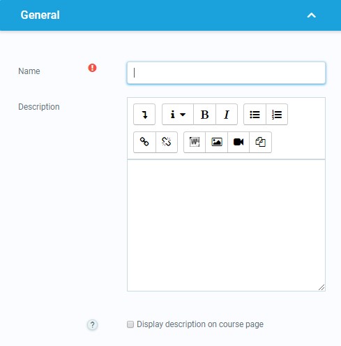 If this box is ticked, the description will appear on the course page just below the name of the page.