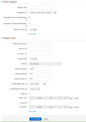 - Select grade category settings as appropriate. Advanced settings may be made available by clicking the “Show more” link.
