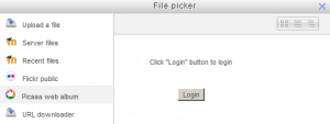 - From the file picker, click on the Picasa web album link and a prompt to log in will appear.