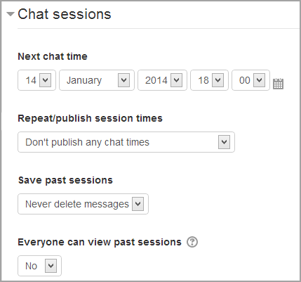 • The day and hour of the next chat session. This will appear in the calendar so users know the schedule but it doesn’t stop them accessing the chatroom at any other time.