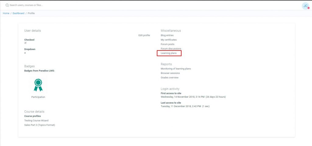 - Learning plan viewer role – for enabling course instructors to view their users’ learning plans