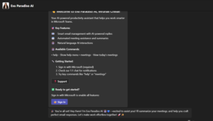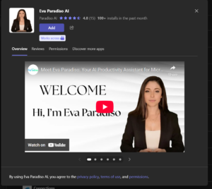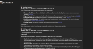 ii) After each meeting, Eva generates a summary and training report that appear in your Teams chat.