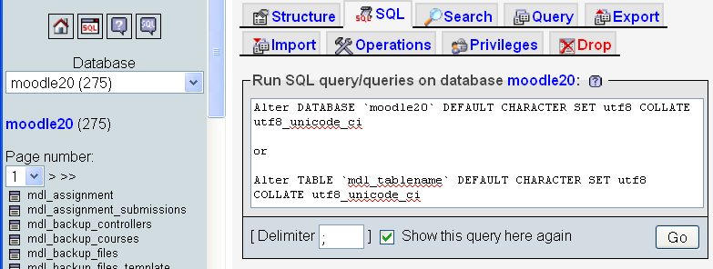 ALTER TABLE `mdl_tablename` DEFAULT CHARACTER SET utf8 COLLATE utf8_unicode_ci;