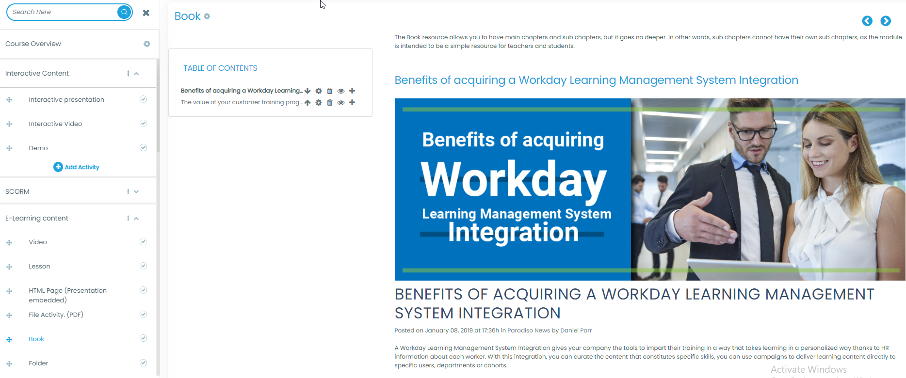 Previously created websites can be imported directly into the Book module. Books can be printed entirely or by chapter.