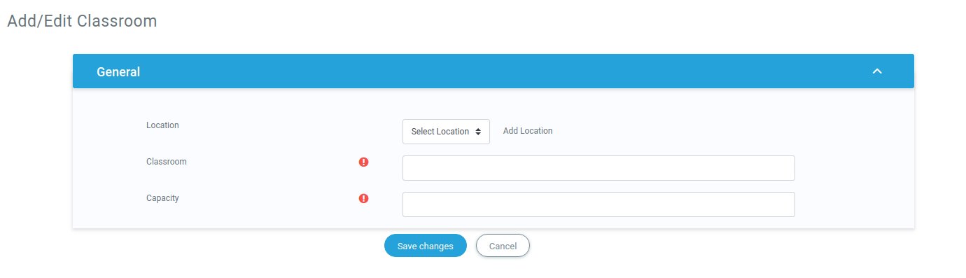 You can add classroom for an existing location that can be selected from the location dropdown. Along with add classroom capacity followed by “save change”.