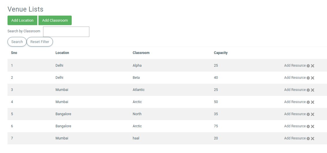 One can add resource using “Add Resource” for classroom and can edit existing venue by accessing the gear icon. Other than this you can search the classroom by its name.