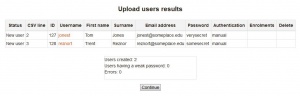 The screen will summarize how many users were uploaded or updated, indicate the number of weak passwords and the number of errors.