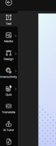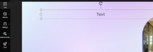 To add text to your slide, go to the left panel and select the first option, Text. Click on it, and a text box will appear on the screen. You can then click inside the text box to edit it and enter the desired content.