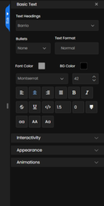 Below the Text Heading, you’ll find the Bullets option. Clicking the dropdown displays various styles. You also have the option to select None if you wish to remove bullets or numbering altogether.