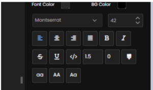 You can also have settings for Font Color and Background Color. The color square automatically displays the current text color, whether it is the default or a color you have previously selected. Clicking the square opens a palette with various font color options. You can also use the color picker (dropper) to select a color from anywhere on the screen or enter a hex code to apply a specific color.