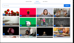 After clicking on Interactive Video, a pop-up will appear with options on the top panel: Upload Video, Search, and My Video.