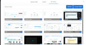 Another option My Video, displays the videos you have already created. To insert one, simply click the plus sign next to the desired video. If you have multiple videos, you can search by name, or create a new video if needed.
