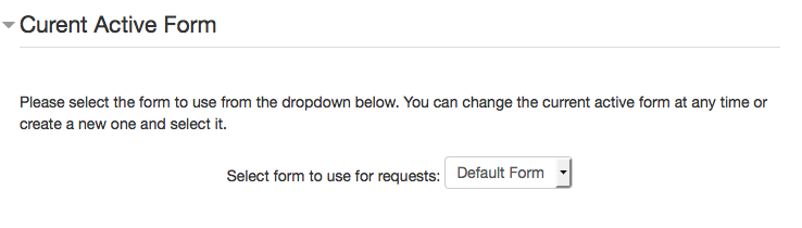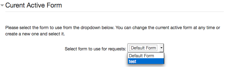 Remember, when you are finished adding and editing your new form, you must select the form to use for requests