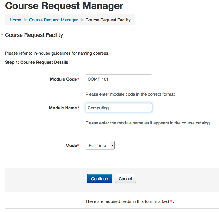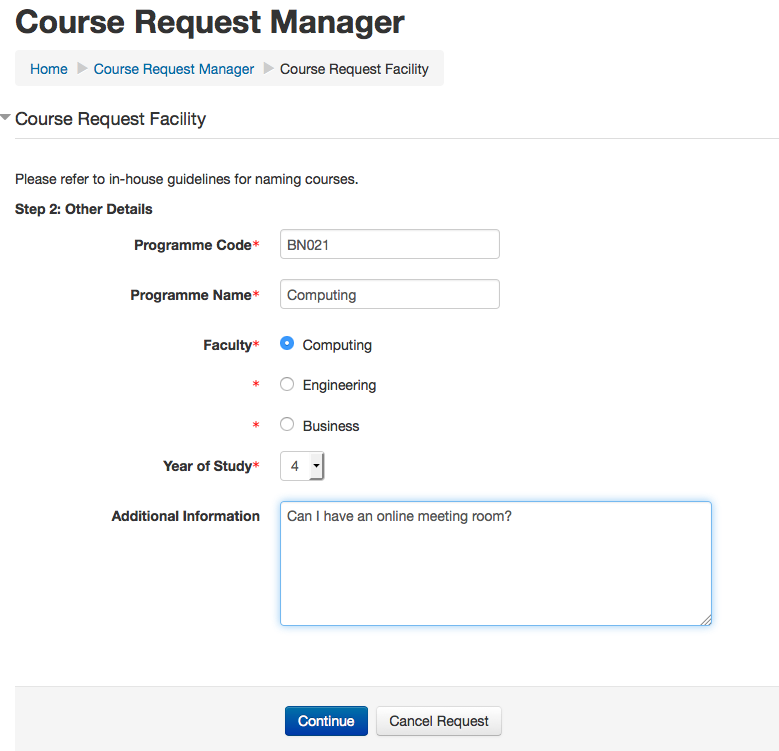 In the example above, I am entering a new request for a course called ‘Computers’.