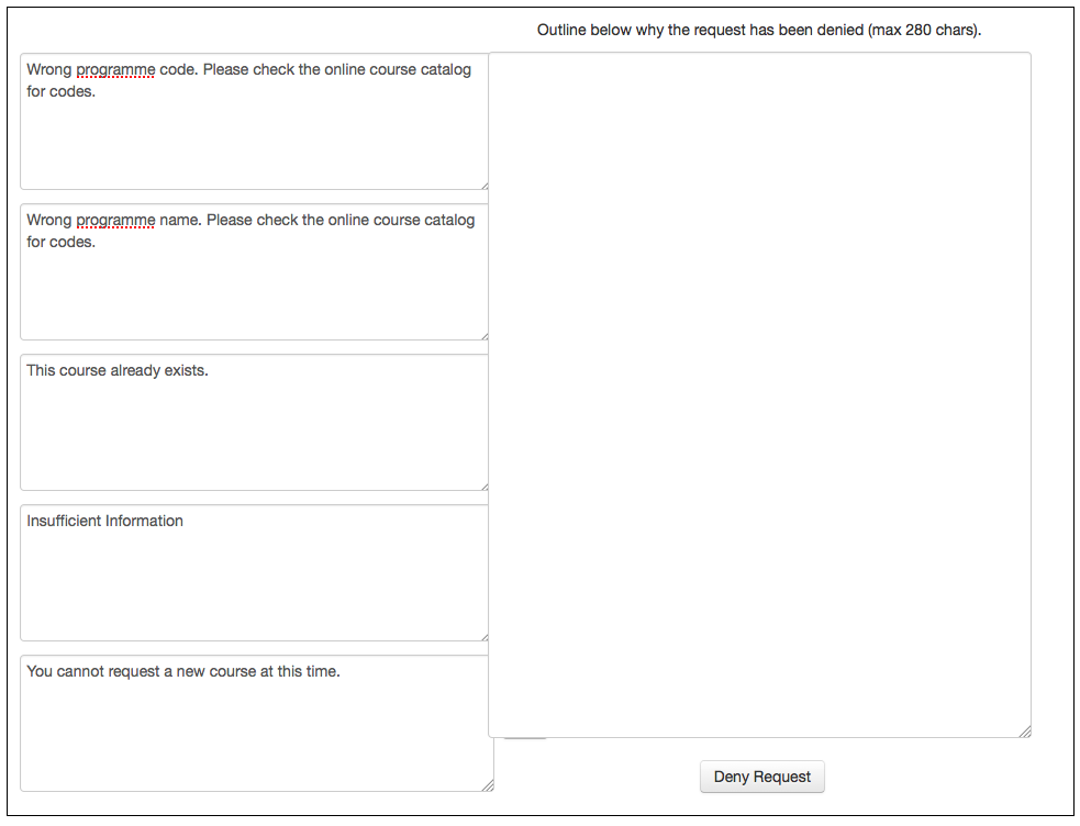 - This email is sent to the listed administrators when a course request is denied.