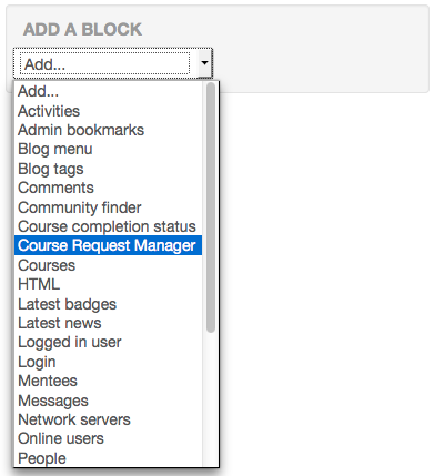 Once the Course Request Manager block is installed, it is recommended that you add the block to the front page.