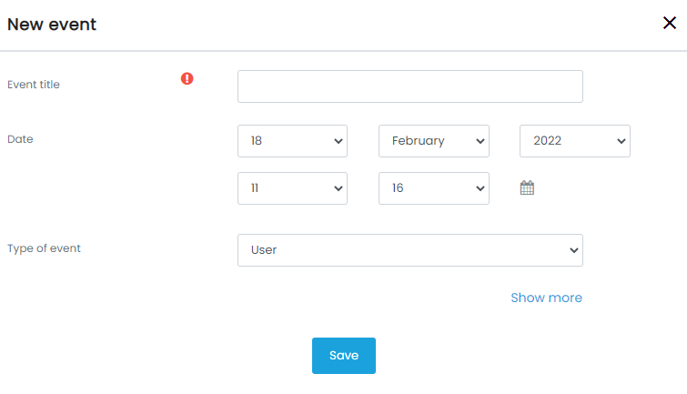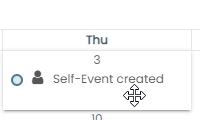 - New events may be added either by clicking the button or by clicking into an empty space in the desired day in the calendar.