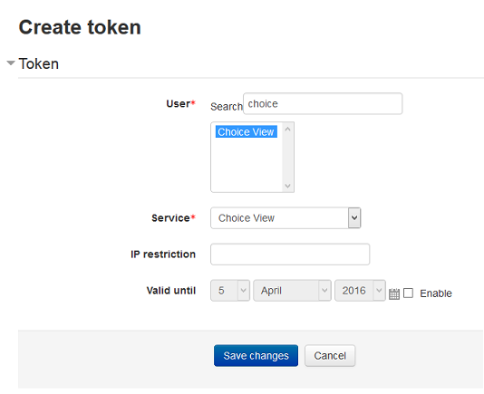 Click on Save changes and copy the resulting token