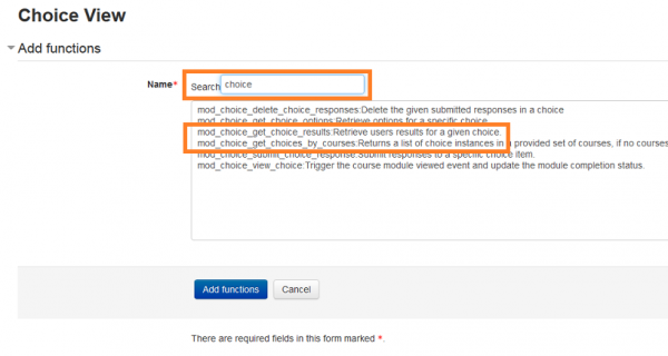 Next, add two functions to the web service, by searching for the Choice functions (you may need to filter by the word choice):