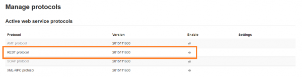This is at Site administration -> Plugins -> Web services -> Manage protocols where you need to enable and save either of the protocols you wish to use (for this guide, we will be using the REST protocol)