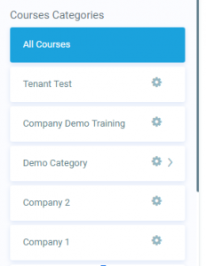 This section shows all courses and all active categories in the LMS. If your LMS has the Multitenant feature active, as Site Admin you will have the ability to view categories for each tenant in your LMS.