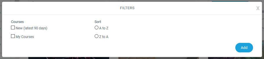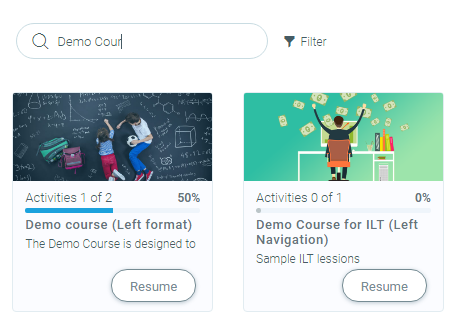 All users will have the ability to search for a specific course as well as apply filters in order to locate a course within the LMS.
