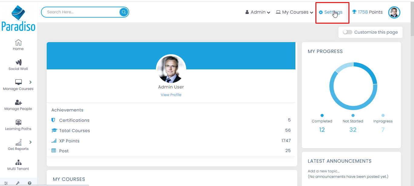 - Step 5: Select any course from the Course catalog and then click on the Course setting.